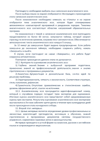 Претенденту необходимо выбрать язык написания аналитического эссе.